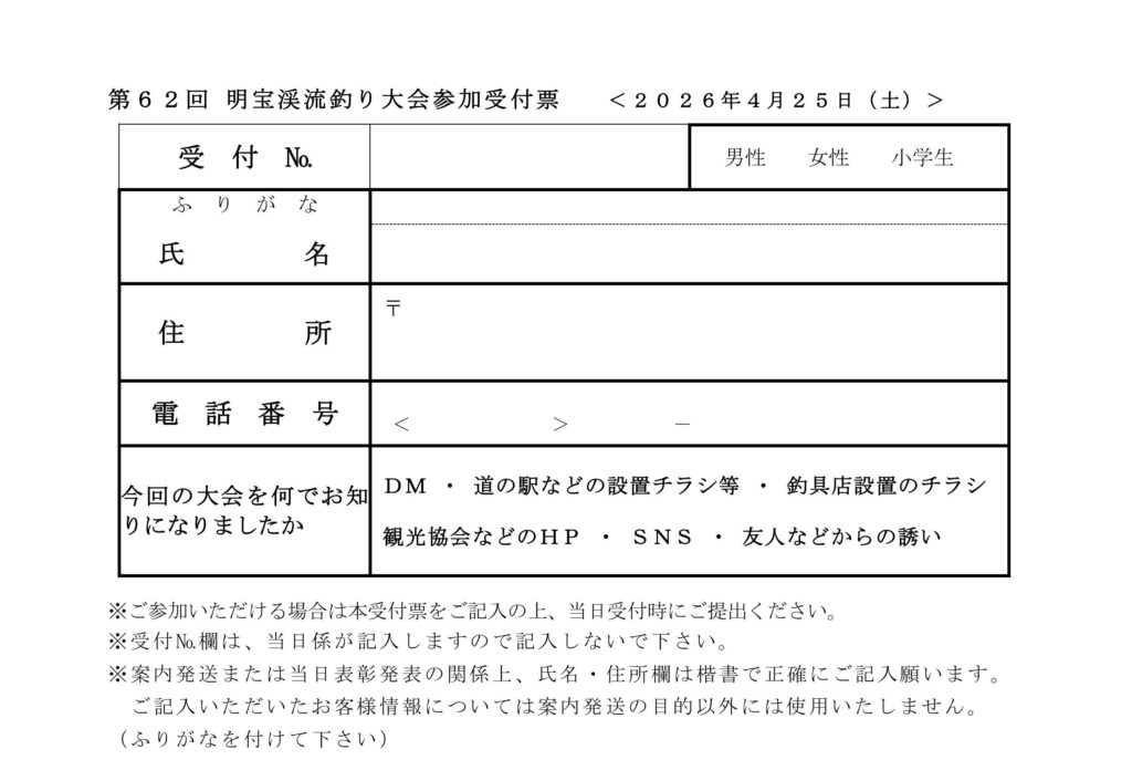 4/25.26開催!『明宝渓流釣り大会2026』